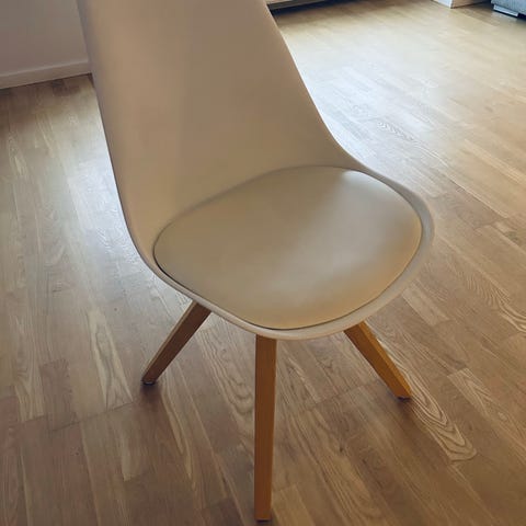 Stole med plastsæde/ryglæn med læder pude fastmontere.