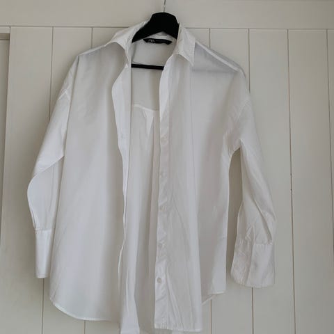 H&M skjorte til dame i størrelse XS. Skjorten er hvid med ternet mønster og fremstillet i polyester. Modellen har krave, knaplukning foran og brystlommer med klap. Velegnet som let overtøj eller som almindelig skjorte i hverdagen.