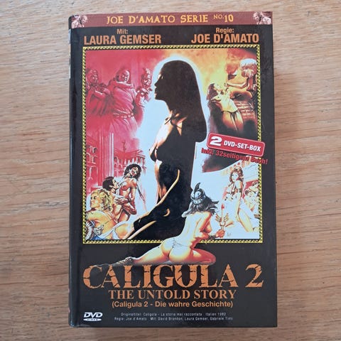 Caligula DVD 3 Disc Imperial Edition. Udgave med 3 dvd-diske af filmen "Caligula". Forsiden angiver medvirkende skuespillere Malcolm McDowell, Teresa Ann Savoy, Helen Mirren, Peter O’Toole og John Gielgud. Aldersgrænse 15 år ifølge mærkning på omslaget.