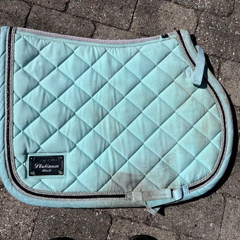 Underlag, RBH springunderlag, Flot brunt rider by horse underlag str. Full/17”. Fejler intet udover lidt hår på indersiden.