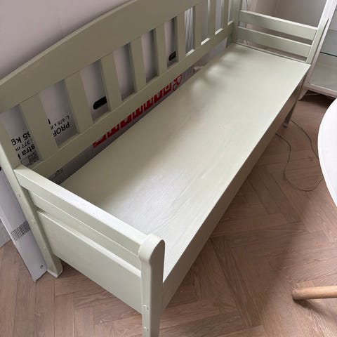 Bænk med opbevaring sælges. Skal bæres ned fra 3 sal på Østerbro