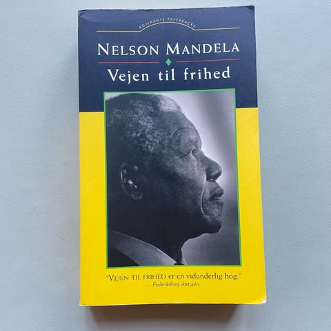 Nelson Mandela "Vejen til frihed" bog. Biografisk værk om Nelson Mandelas liv og kamp mod apartheid, udgivet på dansk. Bogen indeholder en personlig beretning om hans opvækst, politiske virke, fængsling og tiden frem mod demokratiseringen af Sydafrika. Velegnet til læsere med interesse for historie, politik og biografier.