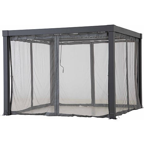 Dallas 4300 myggenetsæt er er designet til både, at være let at bruge og forbedre det stilfulde look på din Dallas havepavillon. Det giver komfort ved, at tillade luftstrømning samtidig med at du undgår ubehagelige insekter. Sættet leveres med nydesignede kroge der nemt påsættes havepavillonens gardinskinne. Nemt at installere og betjene, dette sæt indeholder fire holdbare myggenet stykker der beskytter mod insekter samtidig med at det giver en god synlighed udefra. Sættet inkluderer lynlåse til at forbinde og lukke myggenettet sammen samt stropper for at fastgøre dem til hjørnestolperne. Ingen vedligeholdelse er påkrævet, de kan simpelthen vaskes i kold maskinvask. Ingen klorblegning. Fremstillet af stærk polyester UV-resistente tekstiler, gennemsigtig og letvægtig materiale. Mørkegrå farve. Alt hardware inkluderet.
