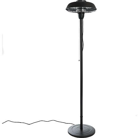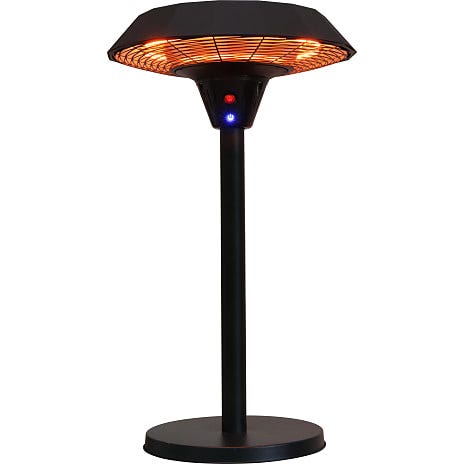 Effektiv, fritstående, infrarød, kortbølge terrassevarmer fra HORTUS. Ideel til terrassen, udestuen eller altanen. Placeres terrassevarmeren for enden af et bord, giver den behagelig varme i et område på ca. 5 m2. Indbygget, 1500W, infrarød, ultra low glare halogenrør som konverterer 92% af energien til behagelig varme, uden at luften omkring terrassevarmeren varmes op. 3 effekttrin på henholdsvis 500, 1000 og 1500W. Der medfølger fjernbetjening. Et overtræk kan købes som ekstra tilbehør.
