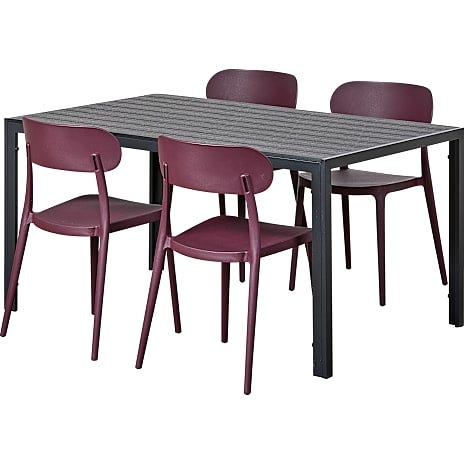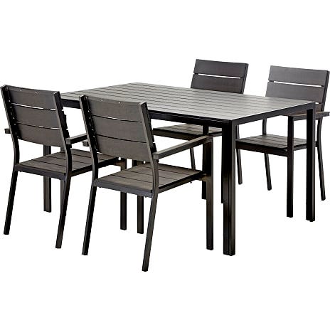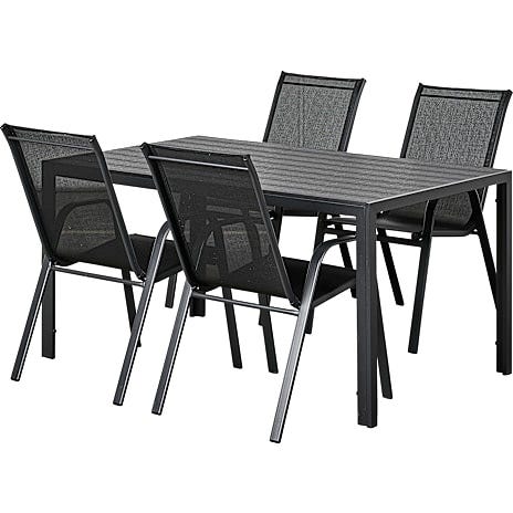 Klassisk og enkelt havesæt der indeholder 1 Carlton havebord i sort og 4 Mallorca havestole i sort.