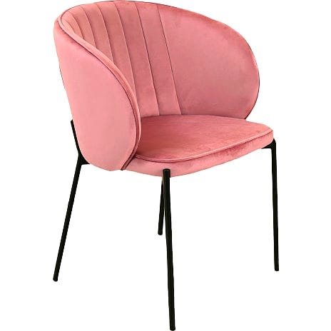 Denne lækre og komfortable spisebordsstol er betrukket med blødt velourstof, som giver en luksuriøs følelse og en behagelig siddekomfort. De elegante sorte metalben tilføjer et moderne og stilfuldt touch, der passer perfekt ind i mange indretningsstile. Stolen er ideel til både hverdagsbrug og festlige lejligheder, og dens tidløse design gør den nem at kombinere med forskellige spiseborde.