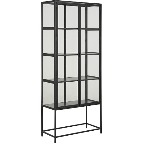 Dette vitrineskab er en tidløs tilføjelse til ethvert hjem. Takket være det hvidpigmenterede og olierede egefiner samt de to glaslåger, er det nemt at forelske sig i dette skab. Udstil dit yndlingsservice på de tre justerbare hylder foran lamelryggen.
