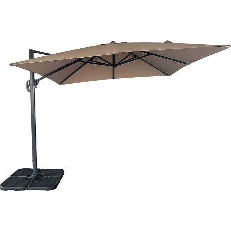 Selv på en solrig og varm dag, kan solen blive for meget. Pompano hængeparasol i sort polyester, afskærmer for solen ved alle vinkler med dens 360 graders rotationssystem, så man kan få en pause fra solen mens man sidder og nyder en kold drik.