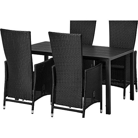 Skab et funktionelt og stilfuldt uderum med dette havesæt, der kombinerer det firkantede Carlton havebord i sort med fire Preston havestole i den flotte farve plum.