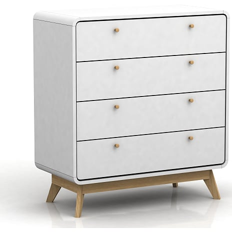 Caitlin serien består af en række stilfulde møbler til stuen, kontoret og soveværelset. Dette møbel er foliebeklædt og har fine hvide skuffer med en flot kant i samme hvide farve som skufferne rundt om. Skænken måler 75 cm i højden, 140 cm i bredden og 39 cm i dybden.