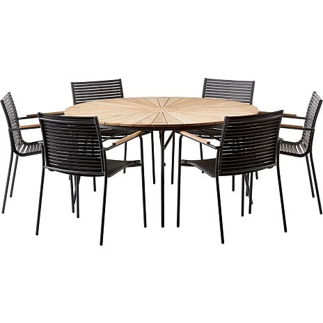 Mood havemøbelsættet er en elegant kombination af moderne og klassiske elementer, der passer perfekt til både terrasse og have. Sættet består af et Mood bord og seks Mood havestole.