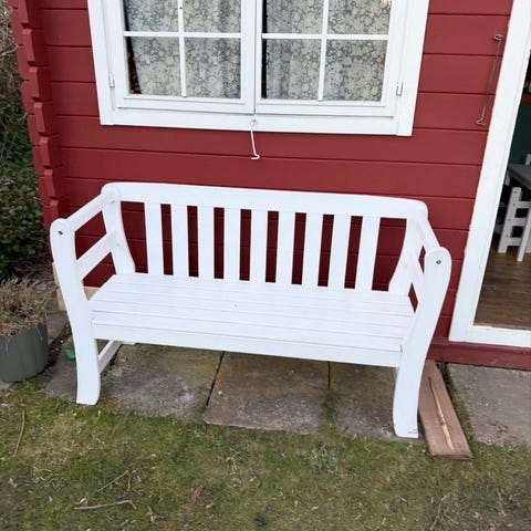 Dit havemøbel er produceret i mahogni, der har et højt, naturligt olieindhold. Træet er grundet og malet med PU kvalitetsmaling, som står for polyurethan. Denne PU maling, er slidstærk og nem at holde. Olieindholdet i træet gør træet holdbart og stærkt. Da træet arbejder efter ibrugtagning, vil udtræk kunne ses, som beskrevet ovenfor. Det rødlige udtræk kan let fjernes med en mild opløsning af grund rens og lunkent vand.
