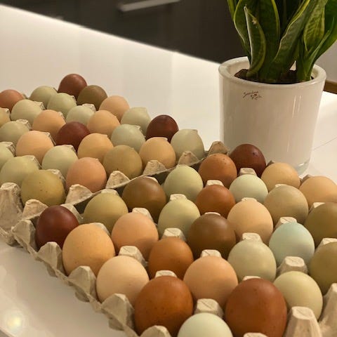 30 stk æg fra fritgående høns i forskellige farver.
