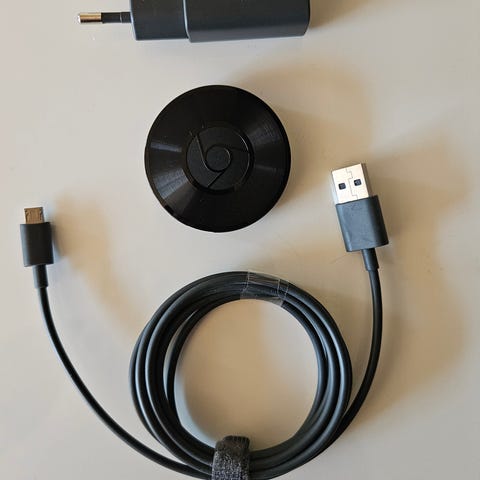 Google lydtilbehør i hvid farve. Enheden har oval form med kabeltilslutning. Velegnet som del af et Google-lydsystem eller som tilbehør til kompatible Google-enheder, afhængigt af model og funktionalitet angivet af sælgeren. Yderligere specifikationer som modelnavn, tilslutningstype og funktioner bør kontrolleres i de medfølgende oplysninger eller på selve enheden.