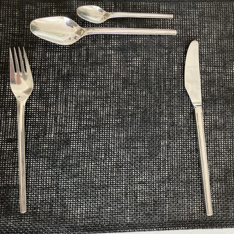 11 skeer, 11 knive og 12 gafler FUGA bestik fra Gense til salg samlet.