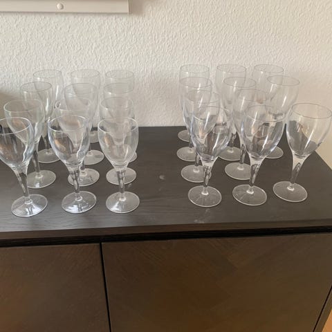 Luigi Bormioli. Der er tale om krystalglas. Kan sendes mod betaling af fragt, men skal nok helst afhentes.