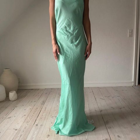 Denne kjole fra A-View har et elegant og moderne udtryk i en blød, støvet grøn farve, der giver et roligt og sofistikeret look. Det klassiske wrap-design bindes i siden og skaber en smuk, feminin silhuet, mens den asymmetriske nederdel falder i bløde bølger og tilføjer fin bevægelse til helheden.