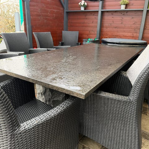 Granitbord(158x76) og bænkesæt. Nypris for bordet(200x100) er 11,813kr