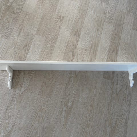 Smuk fransk hylde fra lille specialbutik (oprindeligt fransk loppefund). Malet i vintage beige og voksbehandlet for en silkeblød finish. Mål: 92x25 cm. Klar til et nyt hjem med sjæl.