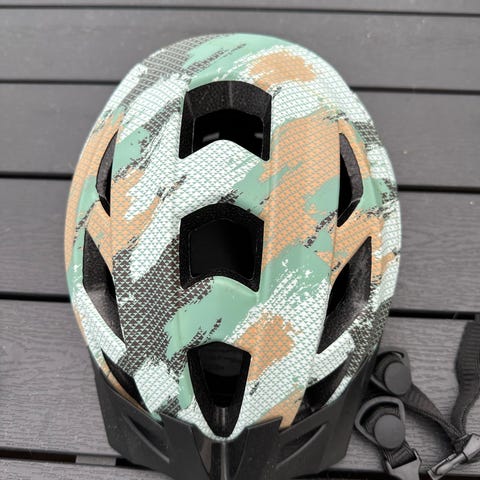 Starfighter cykelhjelm i sort camouflage-look. Str 54-58 Hjelmen har flere ventilationshuller sælges billigt