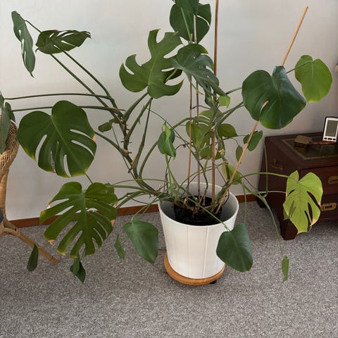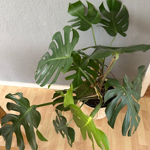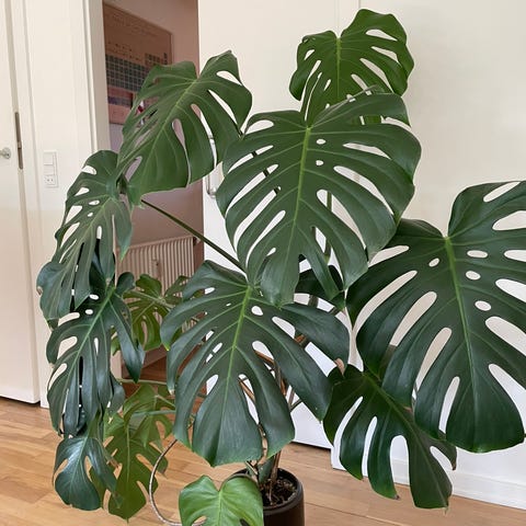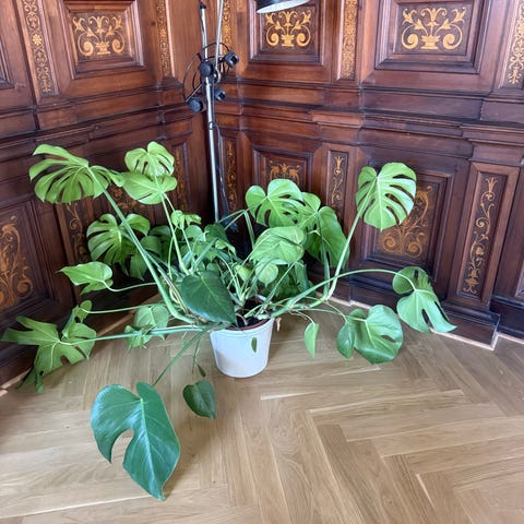 Stor flot monstera ca. 1 meter høj. Skal omplantes i ny lækker jord. Kurv følger ikke med.