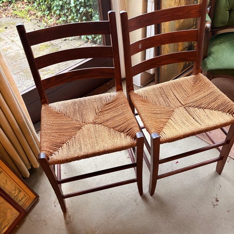 Fede retro spisebordsstole I bøgetræ med sæde i flet