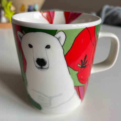 Diddl krus i porcelæn med integreret Diddl-figur på indersiden af kanten. Ydersiden har orange baggrund med pingvinmotiv og Diddl-figur samt tekst. Kruset er overvejende hvidt indvendigt og på hank. Velegnet til varme og kolde drikke.