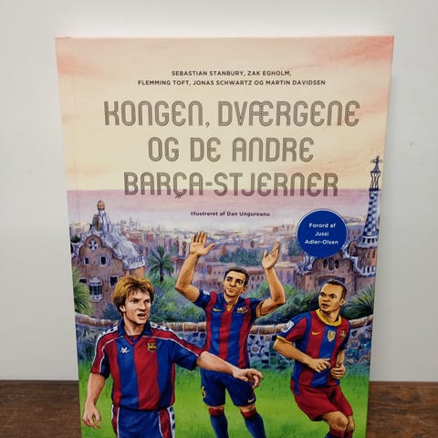 Our Football Heritage "Kongen, dværgene og de andre Barca-stjerner" bog. Illustreret fodboldbog om FC Barcelona og klubbens spillere og historie. Bogen er på dansk og udgivet af Our Football Heritage i 2022. Indbundet udgave med illustrationer af Dan Ungureanu. Egnet til læsere med interesse for fodbold og FC Barcelona.