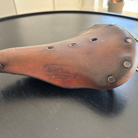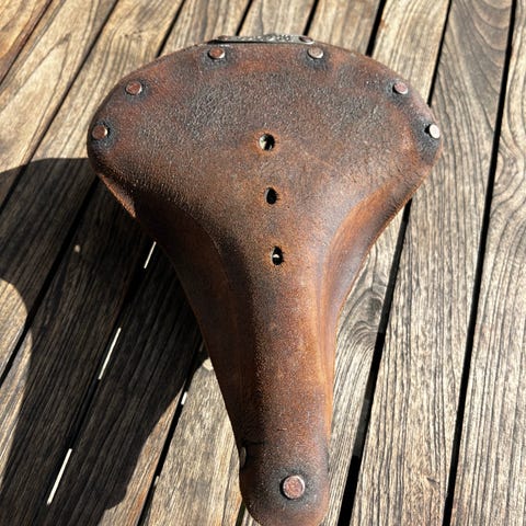 Sadel, Brooks lædersadel, brun, patineret, sendes ikke.