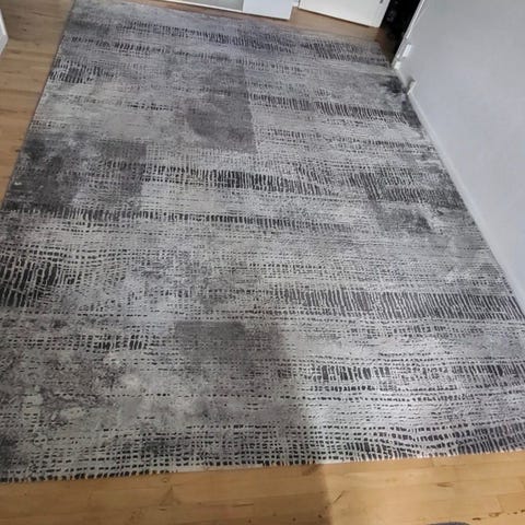 Bloomingville tæppe 200*300 med grafisk mønster i lyse nuancer med mørke, zigzag-formede linjer. Tæppet har et nordisk, geometrisk design, der egner sig til brug i f.eks. stue, spisestue eller køkken-alrum. Velegnet som gulvtæppe under spisebord eller sofabord for at samle rummet visuelt og give en blød overflade at gå på.