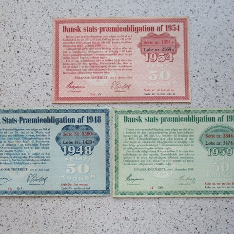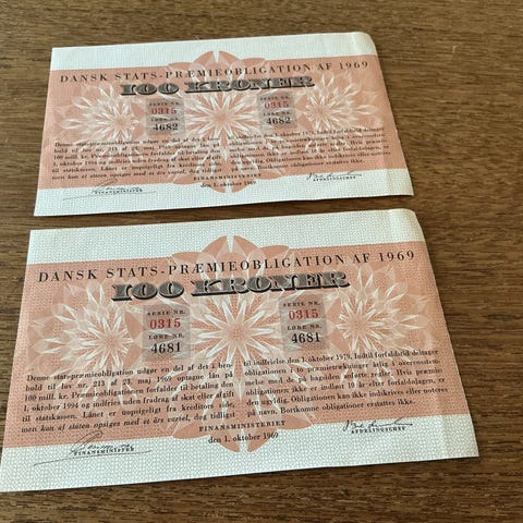 Præmieobligation 100kr -1965 2 stk. - 40 pr stk