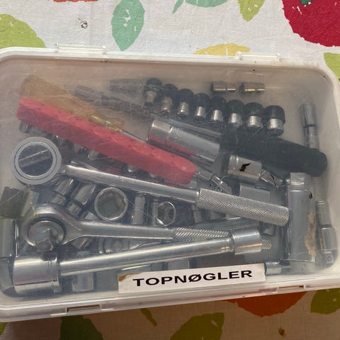 Chrome molybdenum steel topnøglesæt med skraldenøgle i metalkasse