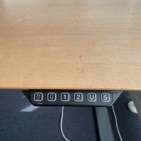 Bordet har elektrisk højdejustering med betjeningspanel under bordpladen.
