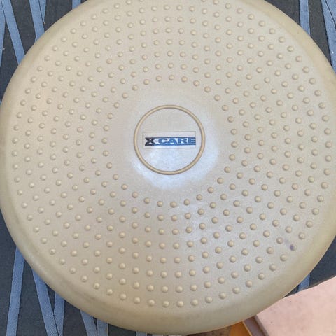 Empelvic bækkenpude i sort farve. Puden er formet med bølger og er beregnet til at støtte bækkenområdet under liggende øvelser eller afspænding. Medfølgende stofpose med snøre gør det muligt at opbevare og transportere puden. Velegnet til brug derhjemme, på klinik eller til træning, hvor der ønskes ekstra støtte til bækken og lænd.
