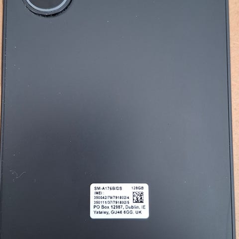 Samsung Galaxy A17 5G smartphone med 128 GB intern hukommelse. Modellen tilhører Galaxy A-serien og understøtter 5G-forbindelse. Telefonen har en slank designprofil på 8,8 mm, et 50 MP-kamera og 4x OS-memory ifølge oplysningerne på emballagen. Velegnet til almindelig brug, streaming og lagring af apps, billeder og video med den angivne lagerkapacitet.
