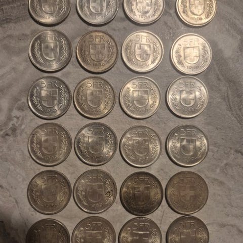 1950 - 5 franc sølvmønt fra Schweiz