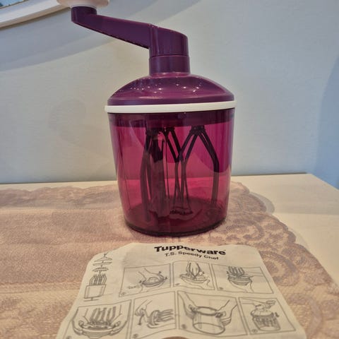 Strømfrit køkkenredskab til at hakke, blende og piske. Alsidig, hurtig og nem at bruge, med buede skarpe knive, der lynhurtigt hakker grøntsager, urter og frugter og et piskeris til at blande og piske med. Låget er designet med en effektiv litemekanisme. Beholderen har måleangivelser for hver 100 ml op til 600ml