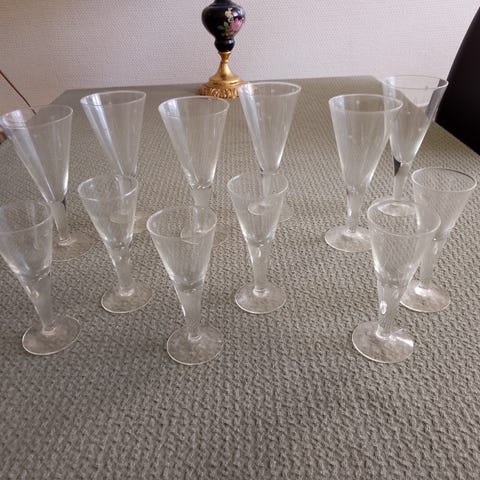 3 stk. champagneglas med en form, som en keglestub