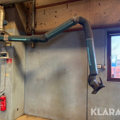 Nederman udsugningsarm velegnet til udsugning af røg, damp og partikler i værksted eller industrielt miljø. Armen er fleksibel og kan positioneres efter behov, hvilket gør den ideel til svejsning og lignende opgaver. Leveres som vist på billeder og er klar til ny installation.