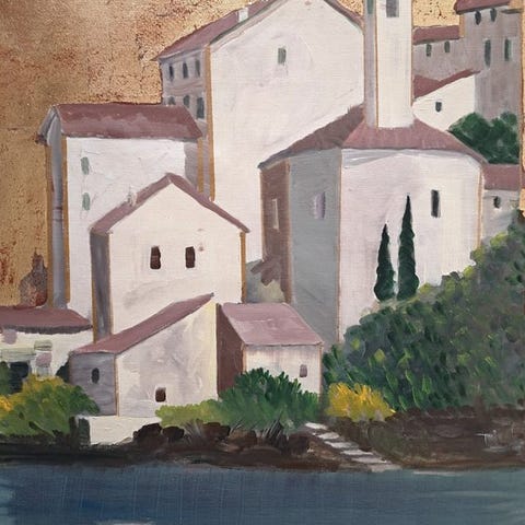 Giorgio Bergallo præsenterer sin originale olie på lærred fra 2020 med titel Frazione, ophøjet i multicolour og guldfolie, 40 × 30 cm, håndsigneret, og viser en dagscene. Klik på den blå "gå til varen" knap, for at købe eller byde på denne vare. Den samlede pris vil blive vist inden du afgiver dit bud.