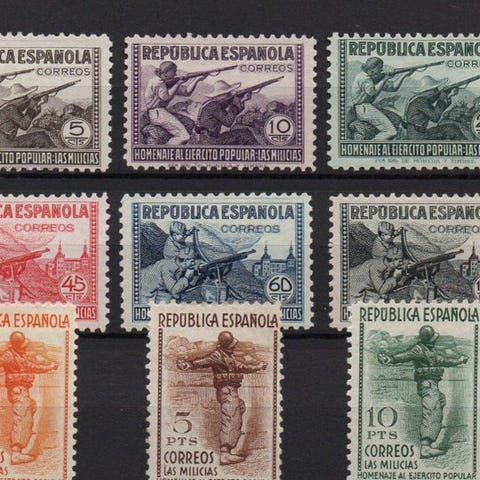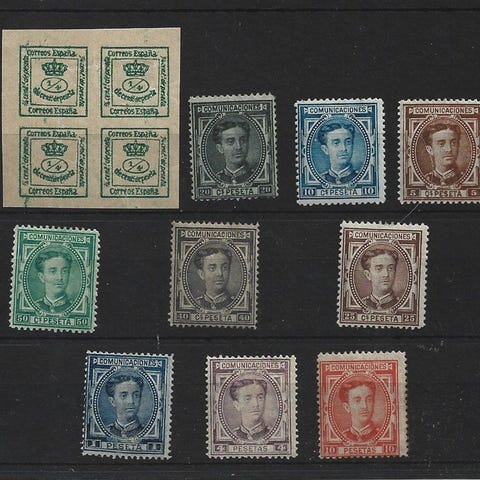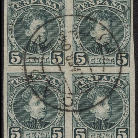Fra Spanien, 63 blokke af fire frimærker i mint tilstand uden gummitas, dateret 1920–1949. Klik på den blå "gå til varen" knap, for at købe eller byde på denne vare. Den samlede pris vil blive vist inden du afgiver dit bud.