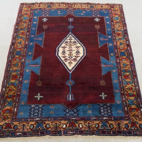 Et smukt kaukasisk tæppe med 3 medailloner; den brune farve viser alderen.