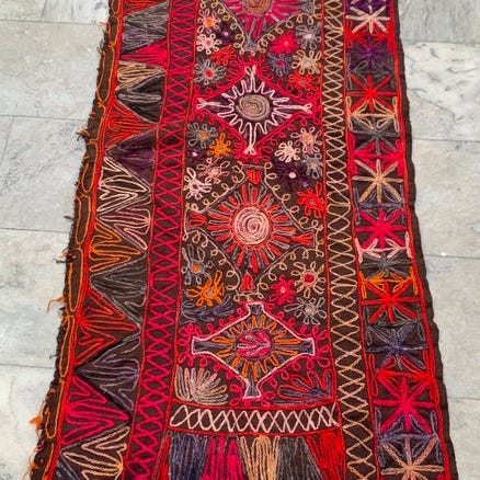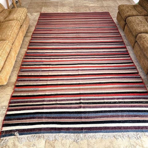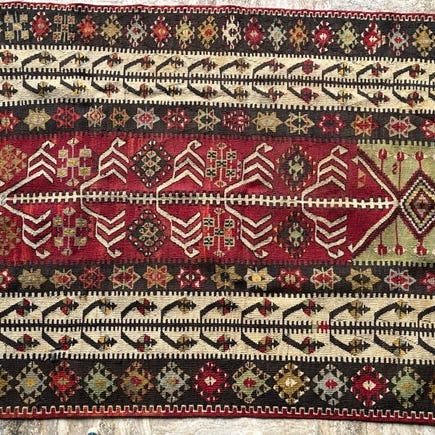 Kelim’en er gammel og kun brugt i fremragende stand. Den traditionelle produktionsteknik og det høje håndværksniveau, der er nødvendigt ved produktionen af disse tæpper.