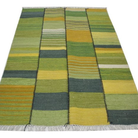Oprindelse Indien, model håndvævet Kelim bomuld grøn, mål ca. 240 × 170 cm. Klik på den blå "gå til varen" knap, for at købe eller byde på denne vare. Den samlede pris vil blive vist inden du afgiver dit bud.