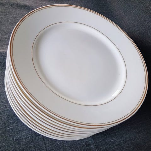 Spisestel produceret af det tyske firma Schumann Arzberg-Bavaria. Væsentlig 24k-guldkant.