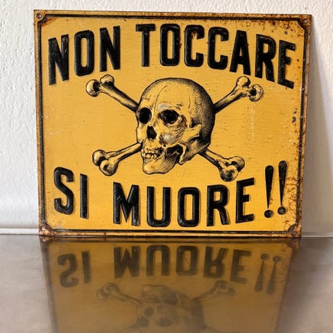 Gammelt emaljeret advarselsskilt Ahtung Minen!
