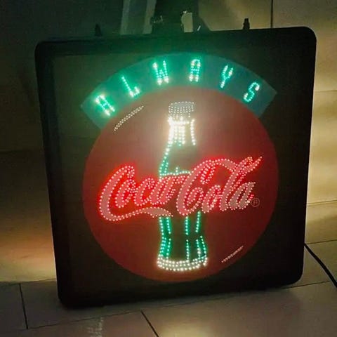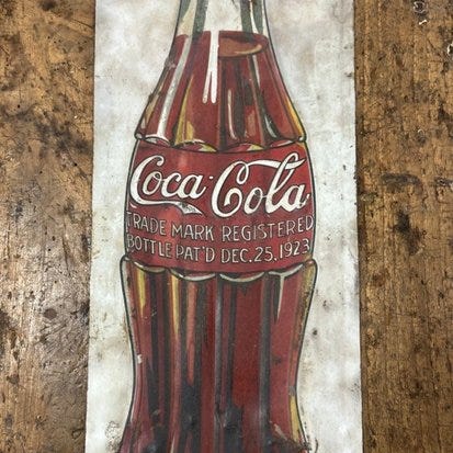 Pepsi-mærket aluminium reklameskilt i form af en kapsel fra 1970'erne, diameter 46 cm og dybde 2,5–5 cm, i god stand med mindre ældningstegn. Klik på den blå "gå til varen" knap, for at købe eller byde på denne vare. Den samlede pris vil blive vist inden du afgiver dit bud.