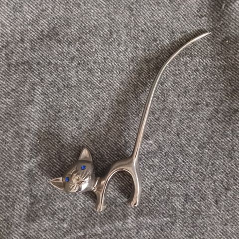 Skønneste lille diamant kat som ørestik eller som pynt på kjolen, skjorten eller jakken mm