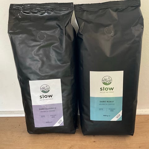 Poser med Slow Dark Espresso. Hver pose vejer 1000 g.