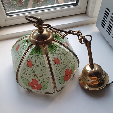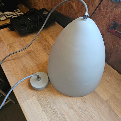 Pæn ældre lampe som for år siden er renoveret med ny sort stofledning og ny maling.